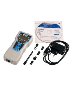 Force gauge DSV with carrying case, standard accessories, AC adapter, USB cable, 1 CD-ROM with USB-driver and software “Force Logger”, manufacturers calibration report, operating instruction in German or English as requested