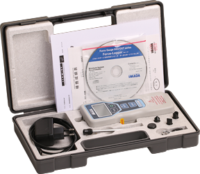 Force gauge DSV with carrying case, standard accessories, AC adapter, USB cable, 1 CD-ROM with USB-driver and software “Force Logger”, manufacturers calibration report, operating instruction in German or English as requested