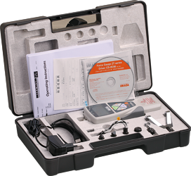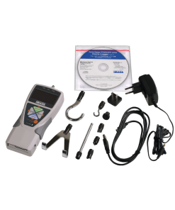 Force gauge ZTS with carrying case, standard attachment, AC adapter with 2 adapters (EU/USA), USB connecting cable, 1 CD-ROM with USB-driver and simple software for data transfer, manufacturers inspection certificate, operating instruction in German or English (as requested)