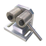 Eccentrically mounted, serrated roller grips allow for self-tightening of thin material.