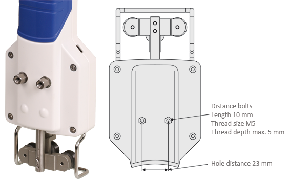 To mount the gauge for online use, the housing can be equipped with mounting threads. There are to bolts with M5 female thread on the rear side. This feature cannot be installed afterwords.