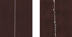 Left: Seam with correct adjusted thread tension