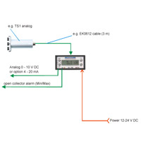 – current (optional): 4 – 20 mA (instead of 0 – 10 V DC output) - User set limits (MIN and MAX alarms) with LED indication and open collector output for external control units