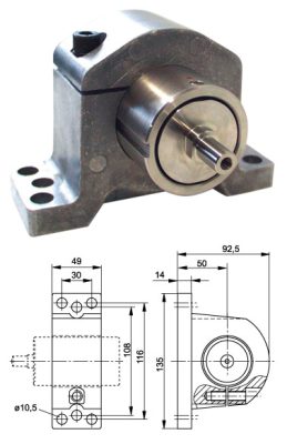 - The progressively adjustable axial mounting depth using a drill hole (Ø 50 mm), enables accurate positioning of the roller depending on the material path