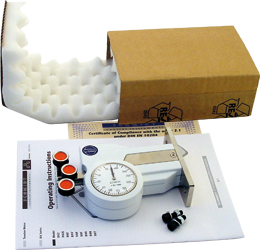 Tension meter DX2S in transport packaging, mounting screws, operating instruction in German or English (as requested), Certificate of Compliance with the order 2.1 according EN 10204 free of charge