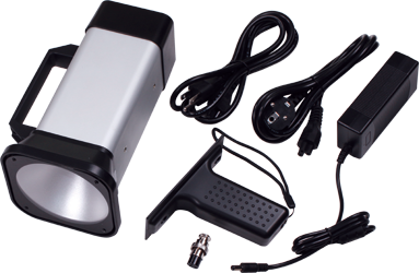 Stroboscope DT-735 with transport packing case, 2 grips, 1 trigger plug, AC adapter/recharger, 2 cables (EU, USA), Certificate of Compliance with the order 2.1 according EN 10204 free of charge and operating instruction in English