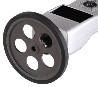 The Tachometer is available as DT-107A-12C with 12 inch (circumference) grooved measuring wheels or as DT-107A with 6 inch (circumference) rubber measuring wheel.