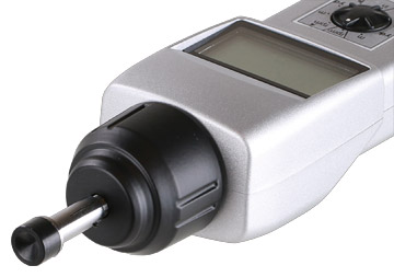 - Hand-held tachometer DT-205LS for non-contact measurement of revolutions and contact measurement of revolutions, line speed and length with an adapter;