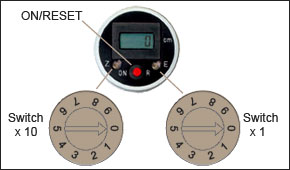 In ”Auto” mode a permanent magnet is mounted to a revolving part of the machine. The sensor supplies the start/stop signal. The predetermined number of revolutions (from 1- 99 rev. set on the rotary switches at the front side) are counted and the cumulated yarn consumption is displayed.