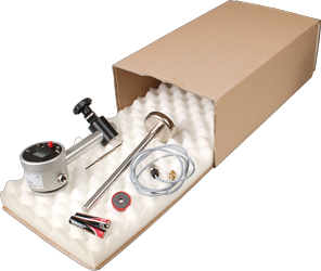 Yarn length meter LMC-V or LMI-V with transport packaging, 2 batteries, 1 magnetic base, 1 sensor with 1 m cable, 1 magnet, Certificate of Compliance of the order 2.1, operating instruction in German or English