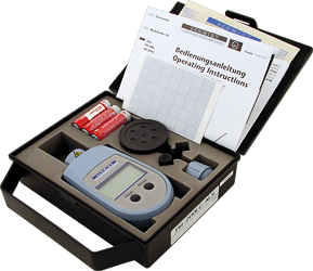 - Hand-held tachometer PH-200LC for non-contact measurement of revolutions and contact measurement of revolutions, line speed and length with an adapter;