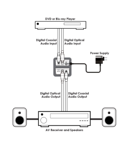 - Supports coaxial and optical digital audio inputs