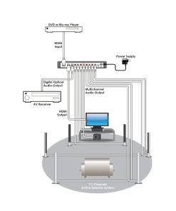 - Supports extracting the HDMI audio and outputing to a multi-channel digital or analog audio signal