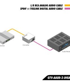 The GefenTV Analog to Digital Audio Adapter converts analog Left/Right RCA-style audio connections to digital S/PDIF or TOSLINK outputs. The unit is compact, easy to install, and operates in a wide variety of operating conditions.