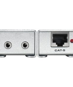 The Gefen EXT-AUD-1000 Audio Extender is capable of extending microphone and stereo analog audio up to 1000 feet. The sender unit sits next to your audio source. Stereo cables supplied with the Audio Extender package connects your audio source to the sender. The receiver unit connects to your speakers or audio output device. One CAT-5 cable connects the sender and the receiver.