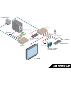 - Extends HDMI, USB, RS-232, bi-directional stereo analog audio, and IR over IP, using a Gigabit Local Area Network