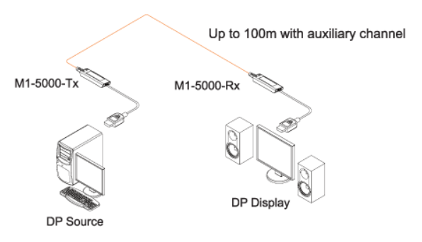 Point-to-Point DisplayPort hybrid cable, M1-5000 has four (4) multi-mode fibers for video/audio and copper wires for auxiliary channel to manage Hot Plug Detection in a jacket. It transmits uncompressed WQXGA (2560×1600) 60Hz signal up to 100m (328feet).