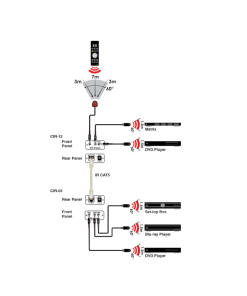 - Control sources anywhere, can be run through walls and extends IR up to 250m