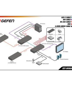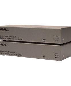 The Gefen EXT-DVIKA-HBT2 DVI KVM HDBaseT 2.0 Extender uses Gefen’s implementation of the latest HDBaseT 2.0 technology to extend DVI over a single CAT-5e cable, up to 495 feet (150 meters). The new HDBaseT 2.0 Colligo platform provides additional features such as USB and 2-way audio extension, and ensures an even more robust and resilient connection than the industry standard HDBaseT. DVI Resolutions up to 1080p and 1920 x 1200 (WUXGA) are supported. HDMI resolutions up to 4K DCI-Cinema (4096 x 2160 @ 30 Hz 4:4:4) and 4K Ultra HD (3840 x 2160 @ 60 Hz 4:2:0) along with 7.1 channels of LPCM and HBR (High Bit Rate) lossless digital audio are also supported when using Gefen DVI to HDMI cables. Supported HBR formats include Dolby Atmos®, Dolby® TrueHD, DTS:X, and DTS-HD Master Audio. USB, RS-232, and 2-way L/R analog audio can be extended between the Sender and the Receiver to accommodate a complete workstation including keyboard, mouse, select USB periperals, microphone, headphones, and powered speakers. 1U tall, half-rack-width enclosures can be surface-mounted, installed in a standard 19-inch rack using the EXT-RACK-1U-GRY rack tray, or be placed on a shelf.