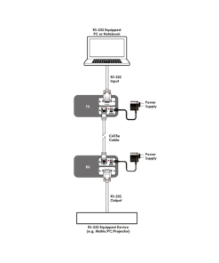 - Extends any device compatible with RS232 from the source to the display up to 250 meters