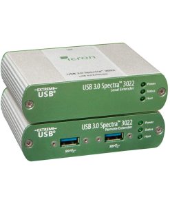 USB 3.0’s distance is specified at 3 meters. When greater distances are required, consider the USB 3.0 Spectra 3022 which supports USB 3.0 5 Gbps throughputs up to 100 meters over OM3 multimode fiber optic cabling. A true plug-and-play solution, the Spectra 3022 is compatible with all leading operating systems and features two locking USB ports and a locking power connector. The Spectra 3022 is warranted for 2 years from the date of purchase and is AIA USB3 Vision compliant. Backward compatibility to USB 2.0/1.1 is not supported by this model. For full backwards compatibility, choose the newest generation Raven 3124 to easily extend USB 3, USB 2 and USB 1 peripherals up to 200m over multimode fiber.