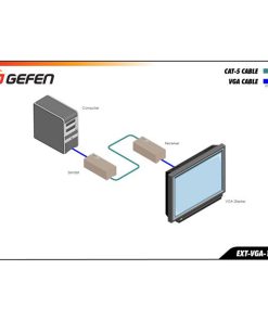 The VGA Extender LR allows users to extend video signals beyond the A/V rack. The VGA Extender Series can be used to extend an analog signal to cover distances up to 330 feet. Industry standard Category 5e (CAT-5e) cable is used for the extension.