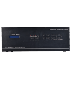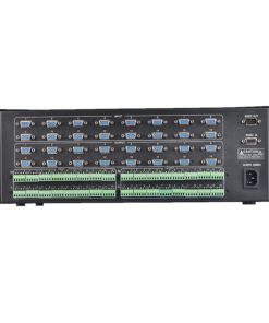 Serial control interface: RS-232 IN: DB9 female, RS232 OUT: DB9 male