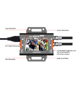 Now you can monitor HDMI video with ez-HSV+. Features you can check are audio bar, incoming resolution and scaled out resolution. The ez-HSV+ comes with the capability to embed external audio as well to give you a more convenient way to plan your production scheme.