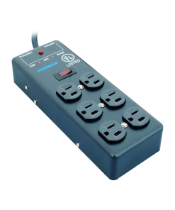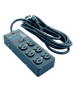 The SS-6B is a 6-outlet steel power block with standard level surge protection, EMI/RFI filtration, heavy duty steel construction, and 15 ft. power cord. Safety Agency: cULus