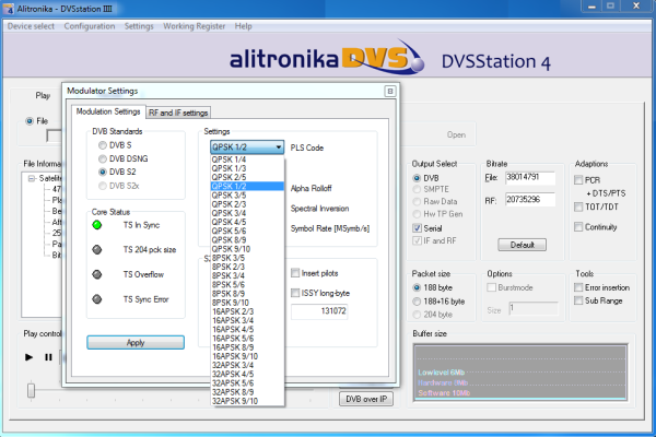 - Supports Standards ETSI EN302307-2, ETSI EN302307-1, and ETSI EN103129.