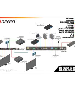 This 4×1 Switcher and its recommended Receiver (the EXT-UHDA-HBTL-RX, sold separately) use the Gefen implementation of the HDBaseT technology to extend the HDMI output of the Switcher up to 230 feet/70 meters at 1080p Full HD and up to 130 feet/40 meters at 4K, using one CAT-5e or better cable. The HDMI and DisplayPort inputs support resolutions up to 4K 60 Hz 4:2:0, with HDCP 2.2 and 1.4. The HDMI input and output, and the HDBaseT output support up to 7.1 channels of highest performance LPCM and HBR (High Bit Rate) lossless digital audio, such as Dolby Atmos®, Dolby® TrueHD, DTS:X, and DTS-HD Master Audio.