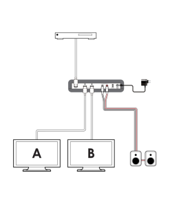 - HDMI signal bypass on both outputs or upscales 1080p signals to 4K on output B and downscales 4K signals to 1080p on output A