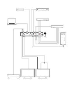 - Supports conversion of multiple video formats and audio input to HDMI or PC/HD and analog stereo outputs