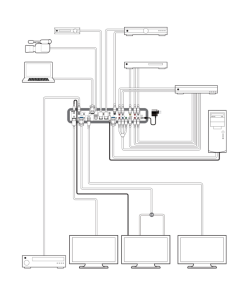 - Supports conversion of multiple video formats and audio input to HDMI or PC/HD and analog stereo outputs