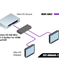 Designing systems capable of distributing 4K Ultra High Definition media requires support for the content of today, and headroom for the content of tomorrow. The Gefen EXT-UHD600-12 splitter distributes signal from one 4K source, and distributes it to up to two 4K displays or video zones. The splitter features a low profile, compact, and surface-mountable enclosure that can fit in tight places. It also accommodates Gefen locking HDMI cables for secure connections.