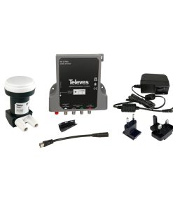 Kit consisting of LNB Wideband that captures the entire frequency spectrum of a satellite and transmits it through two outputs (V-H) in a frequency range between 290 and 2340MHz. The optical transmitter receives the signal from the LNB in its two satellite inputs, in addition to including a third input for terrestrial signal (88-694MHz) mixing. The resulting signal is provided by its optical output in the 1310nm window, with 8dBm optical power.