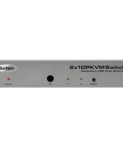 Switch between two computers effortlessly using the Gefen EXT-DPKVM-241 2×1 DisplayPort KVM Switcher, utilizing one display and one USB 2.0 port for a keyboard and mouse. Switch audio, video, and control signals for each computer. Access two computers from one workstation without having to use a network. Switch through the front panel “select” button, using the supplied IR remote control or via the RS232 port. The Gefen DisplayPort KVM Switcher is compatible with both Macintosh and PC keyboards, mice, and displays.
