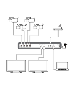 - Combine four SDI sources into a single HDMI signal and simultaneously output to two HDMI displays
