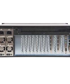 The VSN range of industrial PCs 11 slot PCIe backplane. The switched fabric technology provides high bandwidth Gen3 PCIe slots. Each slot is capable of delivering high resolution bandwidth from a range of capture cards to multiple outputs.