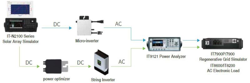 IT-N2100 series solar array simulator is a high performance DC power supply with fast change of IV curve. It can simulate the IV output characteristics of various solar panels under different environments (temperature, light, shadow decay, aging). It can be applied for the tests of solar micro-inverter, power optimizer, satellite power system, sail power array and so on. IT-N2100 has low ripple, low noise and fast MPPT, supports multi-channel synchronous control and high voltage topology.
