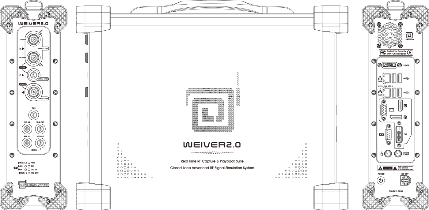 Weiver 2.0 is capable of recording RF signals anywhere you are. It is perfect to test the RF sensitivity or receptor capacity of your devices. With 7kg of weight and 70 watts of low power consumption, Weiver 2.0 gives you great mobility in capturing RF signals.